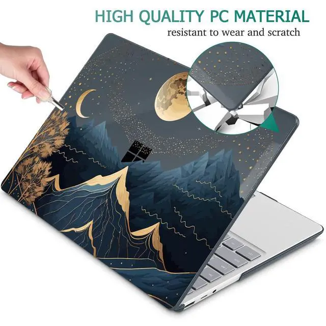 Surface Computer models: 13.5 -inch Microsoft Surface Laptop 5 / 4 / 3 / 2 / 1 Gen with Alcantara Keyboard!! 13.5 -inch Microsoft Surface Book / Surface Book 2 Computer15-inch Microsoft Surface Laptop 3 / 4 / 515.6 -inch Microsoft Surface Book 2 Computer 12.4 -inch Microsoft Surface Laptop GO 1/2Package including: 1x Hard Shell case + 1x Screen Protector + 1x Keyboard cover + 1x Dust plug