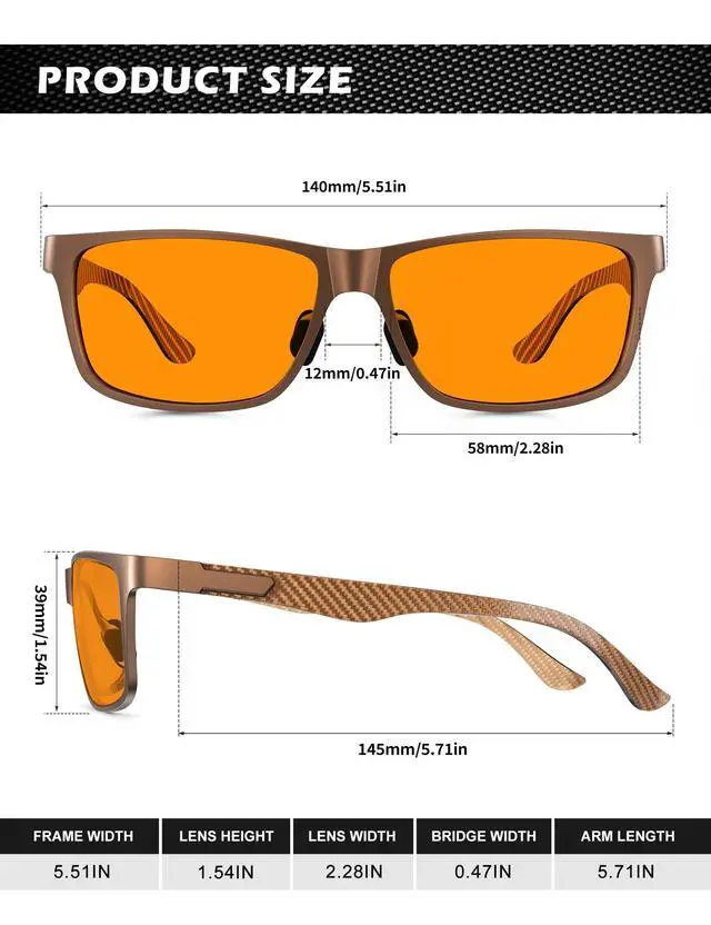 ^^ Premium Temple Material: With superior Al-Mg and carbon fiber composite temple, this type of blue light blocking glasses for men is ultra-light than pure metal frame, also more sturdy. No more worries about broken temples. As more suitable for anyone who often work or play games by the computer, do not miss this pair of practical and classic blue blocker glasses. ^^ Take Care of