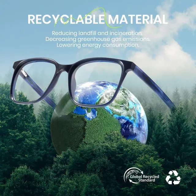 Green Anti-blue Blockers Technology: Our blue light blocking glasses, made from upcycled molded plastic bio-materials, offer stylish options for a sustainable lifestyle that reduces environmental impact while providing reliable eye protection from harmful bluelight ^^