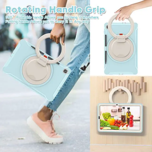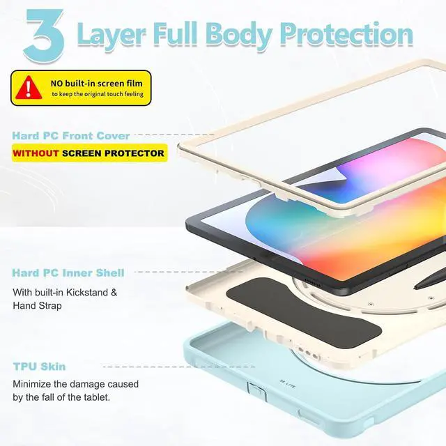 [Compatibility] Exclusively designed case for Samsung Galaxy Tab S6 Lite 10.4 inch (Model: SM-P610/P613/P615/P619/P620/P625/P627) 2024/2022/2020 Release. Please kindly check the model number SM-P*** on the tablet Setting before purchase. ^^ [Built-in Triple-Layer Protection] Advanced 3-in-1 structure, crafted from high-quality PC and shock-absorbing TPU materials, provides comprehensive protection for your tablet, effectively guards against accidental drops, vibrations, slips, and scratches. Don't worry about your tablet slipping from your child's hands and breaking. No need to remove the shell to fully access all ports, buttons and cameras. (Does not include screen protector) ^^ [Amazing Multi-function Handle-Kickstand] The 360 Degree Rotating Kickstand provides multi-angle viewing, offering a pretty convenient user experience for watching videos, meetings, typing and traveling. The stand remains highly stable on various surfaces. It can be opened as a comfortable handle for kids/students to grasp and carry. ^^ [Store Your Pencil Safely] This case for Samsung Galaxy Tab S6 Lite comes with a free Elastic Silicone Ring that securely holds your S Pen while allowing you to remove it effortlessly. Never worry about losing your pencil!!! (NOTE: NO S PEN!!! ) ^^ [Customer Service] Our Professional Service Team will solve your problems to ensure your complete satisfaction within 24 hours. Please feel free to contact us if you meet any problem such as replacement, refund, installation guide.