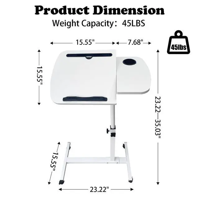 MINUTES: Start using your moving desk immediately! With all tools and hardware included, our clear instructions guide you through quick, tool-free assembly in less than 10 minutes. This couch desk for laptop requires no extra effort, making it a hassle-free solution for creating a sturdy, ready-to-use workstation right out of the box ^^ PORTABLE MULTI-USE WORKSTATION FOR ANY ROOM: Experience unmatched flexibility! Lightweight yet durable, this adjustable overbed bedside table moves seamlessly on smooth-rolling casters. Use it as a hospital table adjustable with wheels, a bedside companion, a living room snack tray, or a craft station. Its robust design ensures stability wherever you need it, making it the perfect hospital table over bed for home use swivel or standing desk solution