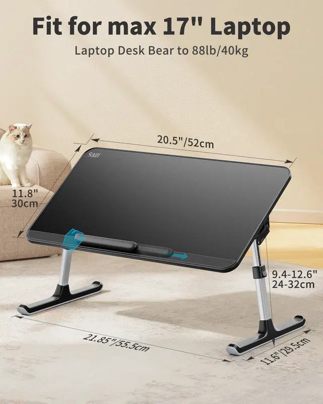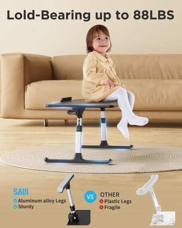 ^^ UNIQUE DESIGN: SAIJI bed laptop tray's panel has a hidden mouse stopper and a laptop clip which avoid the tablet and mouse drop down. Ergonomic design makes the height and angle adjustable, so you can use the portable laptop desk while standing and sitting. It can help reduce the pain of neck and back.