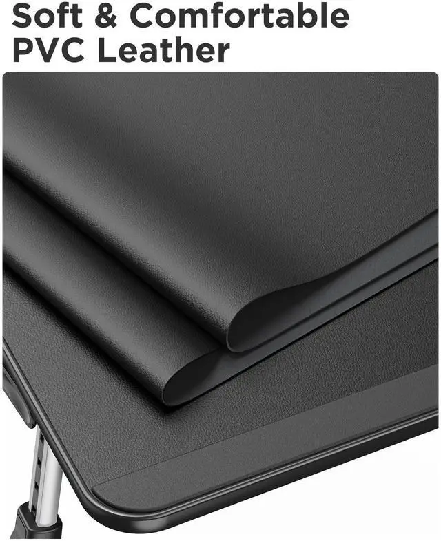 PVC LEATHER DESKTOPEco-friendly and high density PVC leather laptop bed tray table surface. The laptop bed desk table is anti-friction and also prevents items from sliding off. Ideal gifts. Ideal college dorm room essentials for girls/boys, home essentials, home office accessories for study, writing, working, reading! ^^ ADJUSTABLE LAPTOP DESK FOR BEDThe product function of adjustable angles and heights allow you to customize the tray to a good position, then relieve the fatigue of your eyes, back and neck. Two auto-lock buttons on each side can make the quick change in height easily.