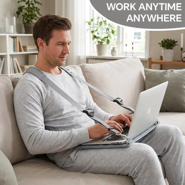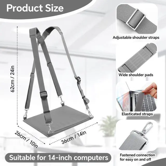 Features: Beyond functionality, this wearable laptop stand boasts a refined aesthetic with its classic gray finish, it seamlessly integrates style with practicality, providing convenience while working. This laptop strap will be a nice gift for workers, allowing them to work in a standing position, improving posture and reducing the effects of sedentary behavior.