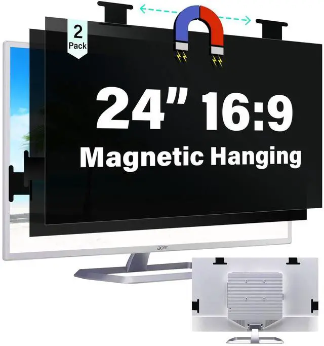 FILTER DIMENSIONSAdapted to monitor privacy screen 24 inch 16:9 aspect ratio, Width: 20 15/16" (532 mm), Height: 11 13/16" (299 mm), Diagonal: 24" ( 609.6 mm), Please verify your screen's width and height measurements before ordering. Compatible with Sceptre KYY Dell HP MNN ARZOPA Samsung Lenovo LG Acer ASUS InnoView KEFEYA, ForHelp, YXK, AOC, PHILIPS, SANSUI and other brands. Please verify your computer screen's width and height measurements before ordering. It is not recommended to select a size based solely on the diagonal ^^ 2025 NEW UPGRADEUnlike other 24 computer screen privacy shield, this magnetic Hanging patented 24 inch privacy screen for monitor is more solid and dust-proof than slide computer privacy screen, more Aesthetics and Practicality than the stick monitor privacy screen, more anti-glare and shatterproof than the regular hanging computer monitor privacy screen, so it won't let you down ^^ PRIVACY SCREEN FOR COMPUTER MONITOROur 24 inch computer privacy screen features advanced microlouver technology from Germany, only visibility at around 30 degrees and black out screens completely near 60 degrees ensure your electronic information confidential. With this monitor screen privacy you don't have to worry about information leakage in public ^^ UNIVERSE APPLICABLEMaoYeye's 24 inch privacy screen for monitors is just what you need for any type of screenthick, thin, curved, or touchscreen! We've spent a lot of time looking through countless reviews to figure out exactly what people want.