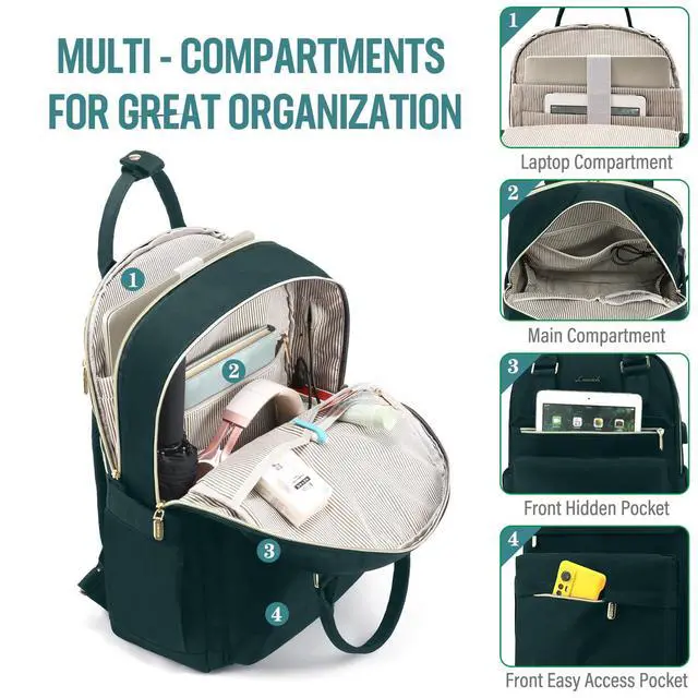 • MULTI COMPARTMENTS Total 4 compartments: 1 separate laptop compartment, 1 main compartment and 2 front compartments provide multi-functional for your computer, A4 folder, books, clothes, etc.