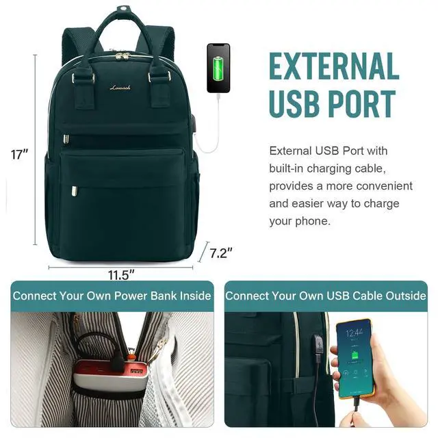 • USB CHARGING PORT With inside charging cable and outside USB port, the backpack provides a more convenient and easier way to charge your devices. No need to keep power bank on the hand, make life easier.