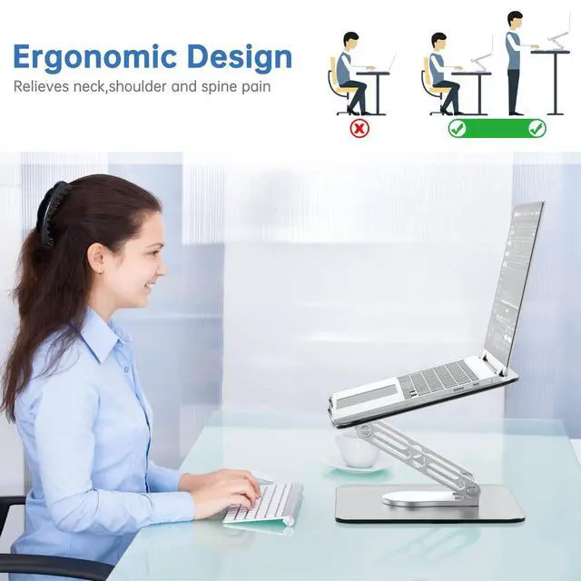 GleYo Laptop Stand for Desk Adjustable Computer Stand with 360 Rotating Base Ergonomic Laptop Riser Mount for Desk Foldable Protable Computer Desk Fits with MacBook Pro Air