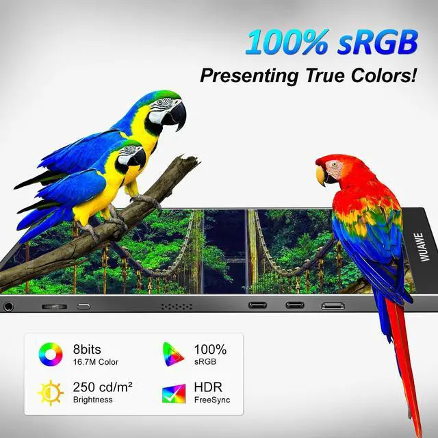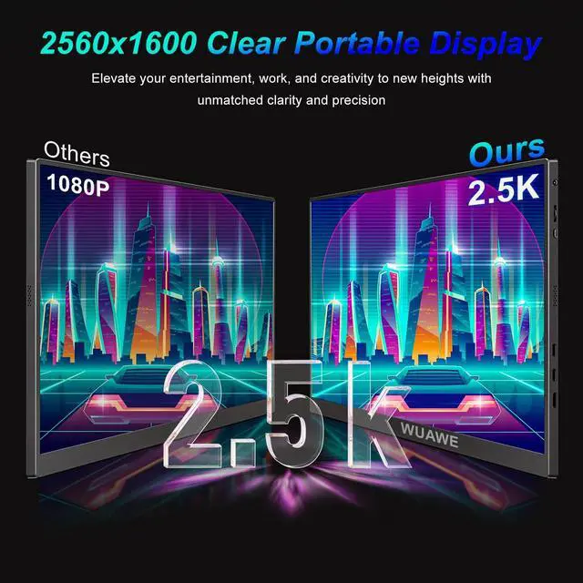 Play External Monitor: WUAWE portable laptop monitor just got even more convenient with plug-and-play functionality. Simply connect to power and display signal transmission using a USB Type-C cable - no drivers needed. With 2 full-featured Type-C ports and a mini HDMI port, easily connect to your laptop, PC, cell phone, Mac, PS5/PS4, and Switch for seamless connectivity on-the-go.