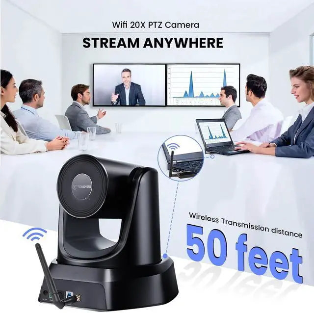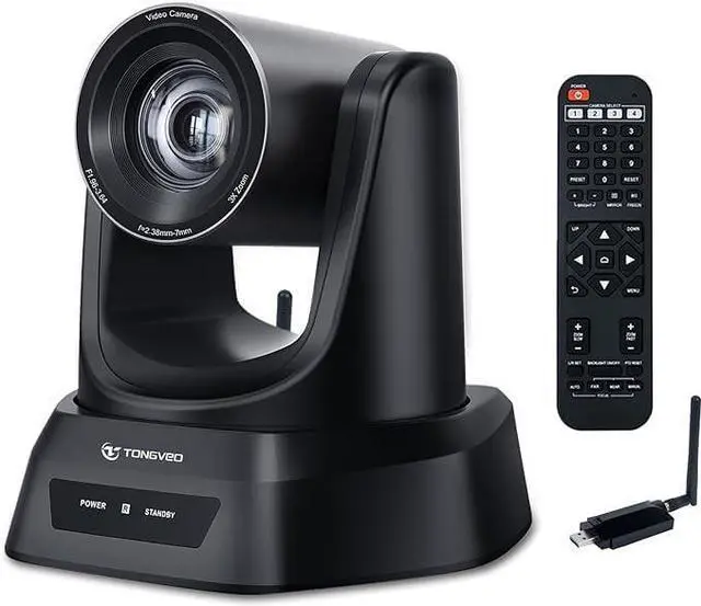 20X 1080P 60FPS USB 3.0 WIRELESS PTZ CAMERA OFFERS EASIER VIDEO CONFERENCE SOLUTIONS. With a 50ft transmission distance the TONGVEO wireless live streaming camera comes with a USB receiver, so you can expect clear, undistorted online working. The superior white balance and exposure mode make the video more vivid. The video compression format supports YUV, MJPG, and H. 264, which makes motion video vivid under low bandwidth conditions. ^^ EASY TO SET UP AND MULTIPLE WAYS OF CONTROLLING. Installation is fast with easy plug and play, no time is wasted, automatically recognized by the computer without the need to install drivers.