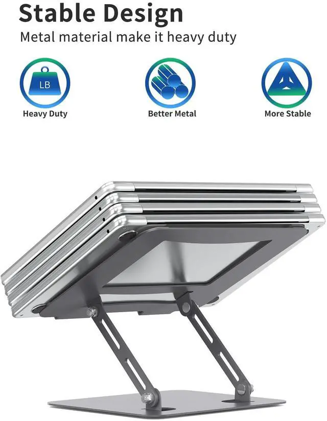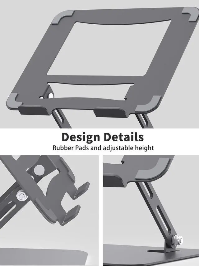 More Stable & Less Wobble - Made of better quality metal material, the base of the laptop stand is heavier. More stable and sturdy than normal laptop riser which is made of lightweight Aluminum alloy. ^^ Tighter Screws without Loosening - Upgrade joint screws help the laptop stand keep stable on the height and angle you desire. ^^ Adjustable & Foldable - Flexible enough to make adjustments that can hold on wherever you set it to. Adjustability makes it more ergonomic. Eye-level height of your laptop keep your neck from pain. And you can fold it up when you do not need it.