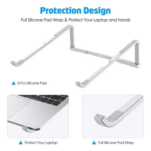 ^^ Sleek macbook stand: Crafted from durable aluminum, our sleek macbook stand offers a sturdy base for your device. As a computer stand for laptop, it securely holds up to 15.6 laptops, blending seamlessly with your workspace.