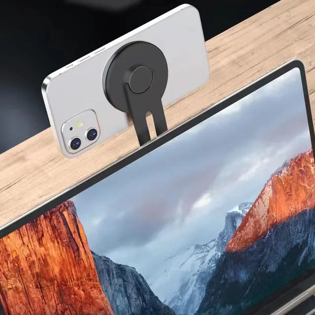 ^^ [Magnetic attraction design]By means of the magnetic attraction principle, it can quickly attach the mobile phone, making it easy to take off and put in. Once aligned, it will stick firmly and not fall off, making the fixation of the mobile phone more efficient and convenient. ^^ [Simple appearance]The black and simple style is versatile with all kinds of devices, not out of place, and can blend into different usage environments. It is both practical and aesthetically pleasing, enhancing the overall visual harmony of the equipment. ^^ [Flexible adjustment]The stand structure can be flexibly adjusted in terms of Angle and position.