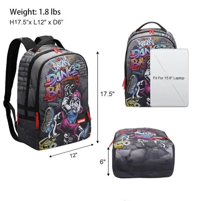 GREAT FOR DAILY USE-Measuring 17.5 *12*6 inches, weight 0.80 kg. Adjustable soft strap with buckles. Two side sealed zippers pockets. The stationery will be collected in front pocket. Multi pockets backpack makes your item organized and easier to find. ^^ CONVENIENT DESIGN-It also has a hidden pocket right behind to handle strape on the top of backpack which is nice for carrying wallet, phone and other valuables. ^^ INDEPENDENT LAPTOP INTERLAYER-Cool computer backpack has three main zippered compartments, can keep your 15.6 inch, 14 inch laptop and other stuffs in the separated space.
