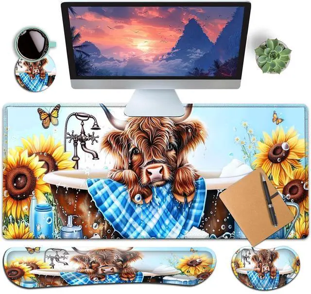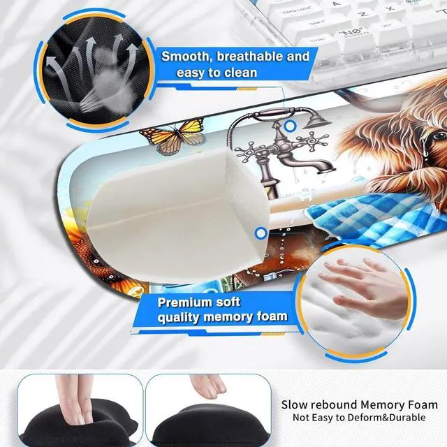 Extended Large SizeThe size of large mouse pad for desk is 31.511. 8inch, which is big enough to fit your full-sized keyboard, mouse, laptop, or other item on the desk, providing more space for professional gaming or office work. Besides, you can also use this extended mouse pad as a desk pad, writing pad, platform protection mat. Keep your desk clean and uncluttered. Ergonomic DesignThe curved and shape design of wrist support set fit perfectly on the wrist. The soft memory foamand filled cushion part will slowly bounce back when your hand leave it, not easy to out of shape.