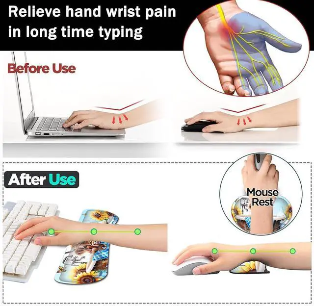 Providing good support to your wrist, maximum relieve wrist stress and tiredness. Ergonomic DesignThe curved and shape design of wrist support set fit perfectly on the wrist. The soft memory foamand filled cushion part will slowly bounce back when your hand leave it, not easy to out of shape. Providing good support to your wrist, maximum relieve wrist stress and tiredness.