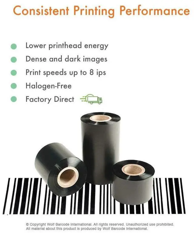 4.33" x 1476' / 110 mm x 450 m Thermal Transfer General Purpose Wax Ribbon 1" Core Coated Side Out. ^^ Compatible with Zebra 105SL, 110PAX, 110PAX2, 110PAX3, 110PAX4, 110Xi4, 110XiIIIPlus, 140Xi, 140Xi4, 140XiII, 140XiIIIPlus, 170PAX, 170PAX3, 170PAX4, 170Xi, 170Xi4, 170XiII, 170XiIII, 170XiIIIPlus, 220Xi4, 220XiII, 220XiIII, 220XiIIIPlus, 2746 Printers. ^^ Dependable and Economic Printing Solution, Performs well on a Wide Variety of Substrates found in worldwide market, The lower printhead energy provides density and dark images, 'Plug and print' in replacement requires no printer adjustments, Print speeds up to 8 ips, Halogen-Free.