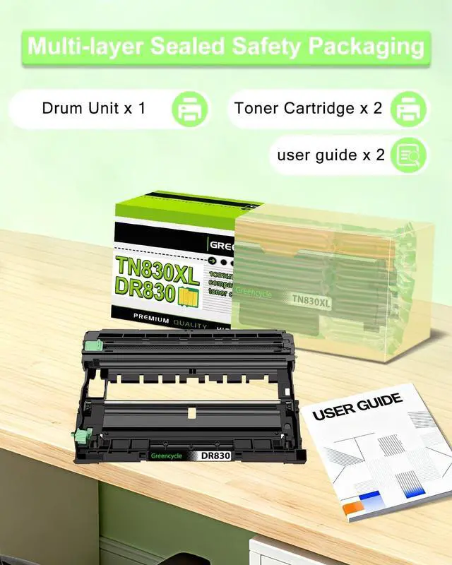Product Name: Greencycle High yield Compatible Toner Cartridge and Drum unit set Replacement for Brother TN830 TN830XL TN-830 TN-830XL TN830-XL Toner cartridges and