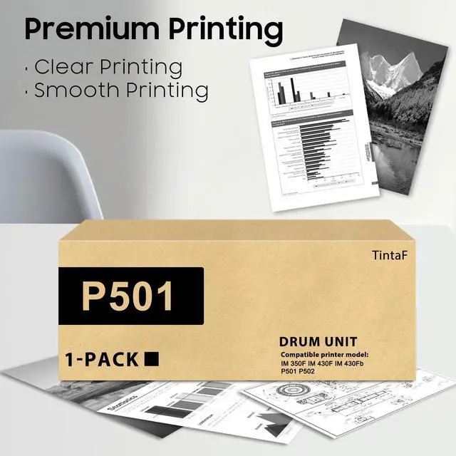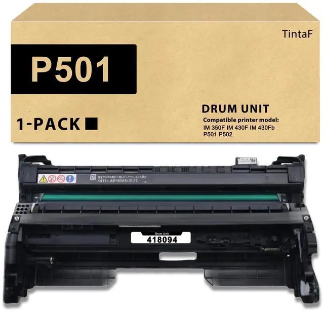 High Page Yield: TintaF P 501 418094 Drum Unit Up to 40, 000 pages per P 501 black Photoconductor Drum Unit, Letter/A4 at 5% coverage ^^ TintaF for IM 350 IM 430 419095 418094 P 501 Photoconductor Drum Unit upgrade material with high printing quality, clear text, high page yield ^^ TintaF P 501 Photoconductor Drum Unit with 1x Black (418094 ), which continue to provide you with high print volume, and smooth printing experience