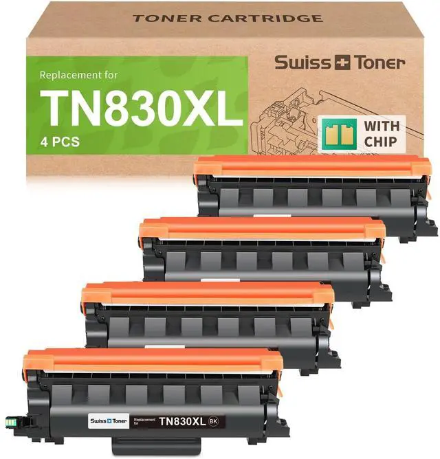 Package Contents TN830XL toner cartridges include 4-pack TN830 XL high yield black toner. ^^ Compatible Printers TN830XL TN830 XL TN-830 toner cartridge replacement for HL-L2400D, HL-L2405W, HL-L2420DW, HL-L2460DW, HL-L2460DW XL, HL-L2465DW, HL-L2467DW, HL-L2480DW, HL-L2865DW, DCP-L2640DW, DCP-L2647DW, MFC-L2760DW, MFC-L2807DW, MFC-L2820DW, MFC-L2820DW XL, MFC-L2900DW, MFC-L2900DW XL, MFC-L2980DW printer. ^^ High Page Yieldswiss toner TN830XL TN 830XL TN 830 TN-830 High Yield Black Toner Cartridge can print approximately 3, 000 pages(Letter/A4, at 5% Coverage). ^^ With Chip swiss toner TN830/XL/V TN-830XL TN830XL toner toner cartridges come with pre-installed smart chips, enabling immediate identification by your printer.