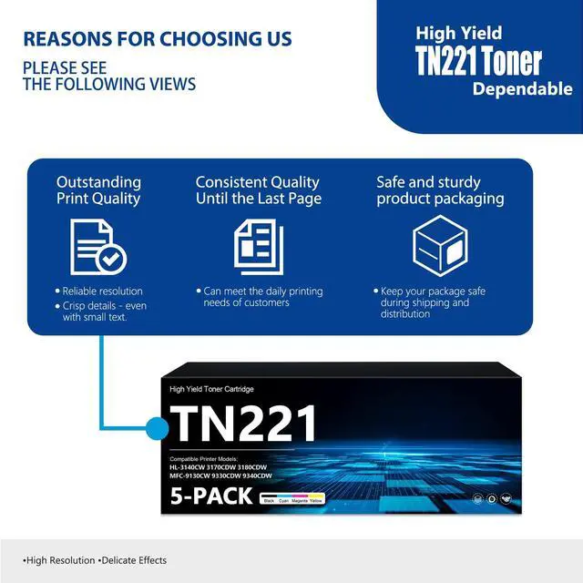Count on reliable, high-quality printing and save time by avoiding common printing issues: Our TN221 Toner provides the printing experience vital for your printing productivity ^^
