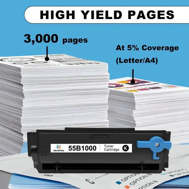 printing performance: NovaTrixia 55B1000 toner cartridge come with intelligent chips, which guarantees the reliability of a long-lasting printing system, making it an ideal choice for efficient printing.