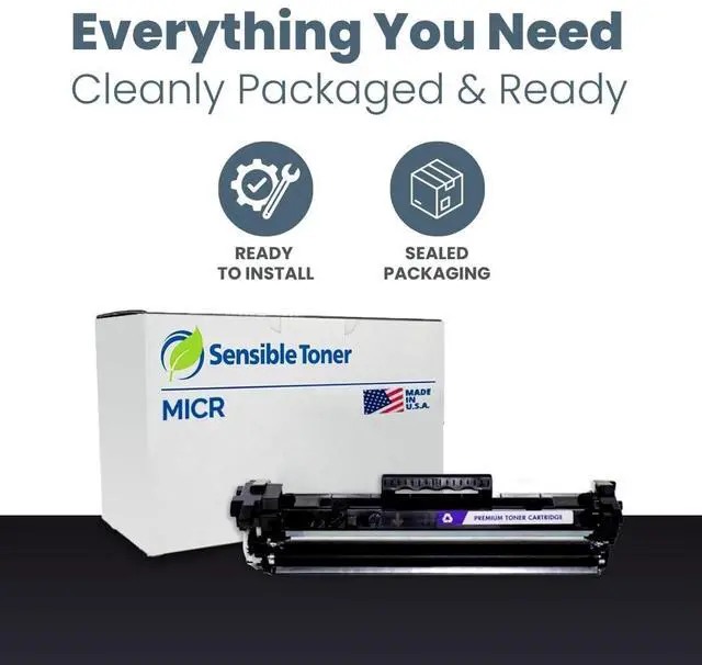 HP printers: LaserJet Pro M203dw, M227fdw Laser Printers. Ensure you are printing the most checks at the lowest cost with Sensible Toner cartridges. This box contains one Sensible Toner Replacement HP 30A Magnetic Ink MICR Laser Printer Toner Cartridge that was Made in the USA.