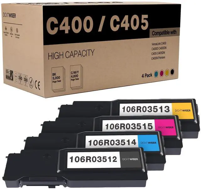 : 4-Pack High-Capacity Toner Includes Black (106R03512), Yellow (106R03513), Cyan (106R03514), and Magenta (106R03515). Also compatible with 106R03524, 106R03525, 106R03526, and 106R03527 for versatile use.