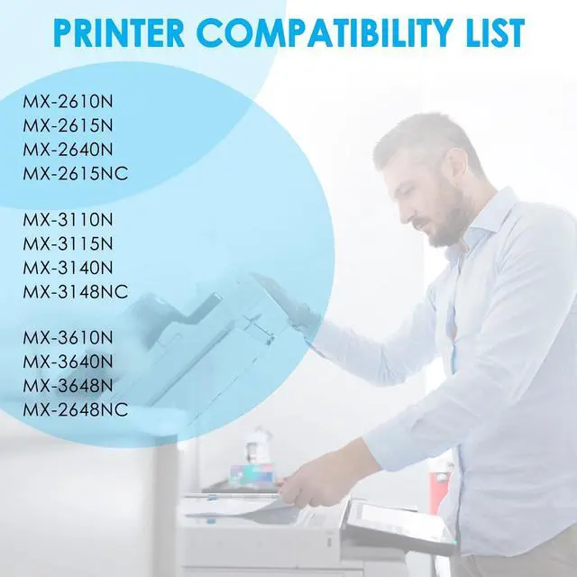 Printer Compatibility: These MX-36NT MX-36NTBA MX-36NTCA MX-36NTMA MX-36NTYA toner cartridges are fully compatible for Sharp MX-2610N MX-2615N MX-2640N MX-2615NC MX-3110N MX-3115N MX-3140N MX-3148NC MX-3610N MX-3640N MX-3648N MX-2648NC Printer ^^
