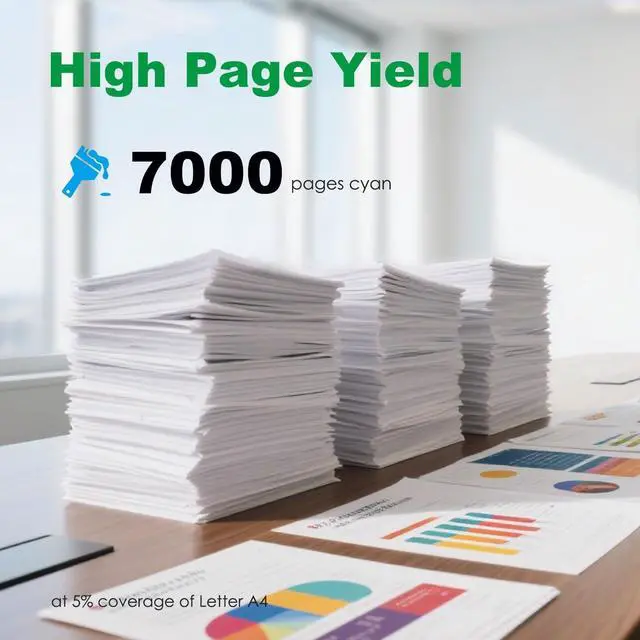 High Yield: 7000 pages in Cyan (at 5 percentage coverage of A4 paper)