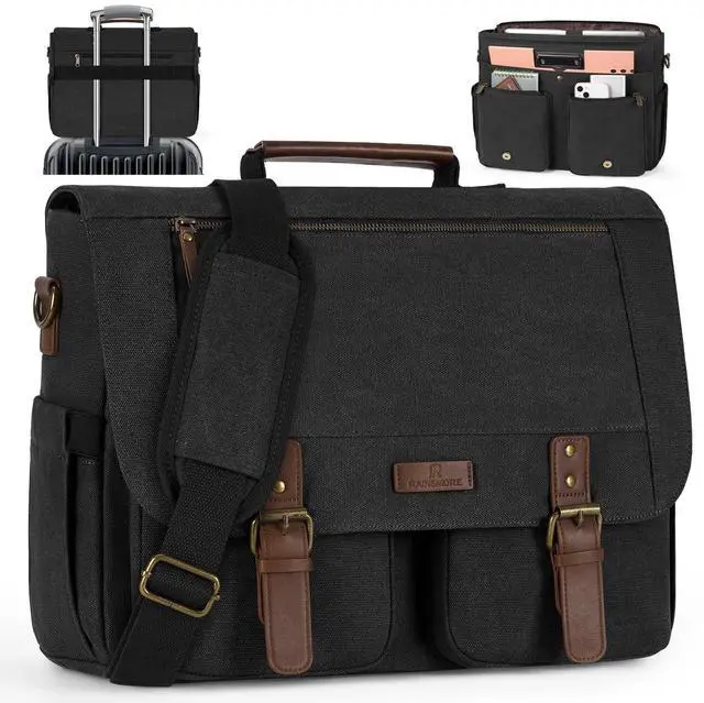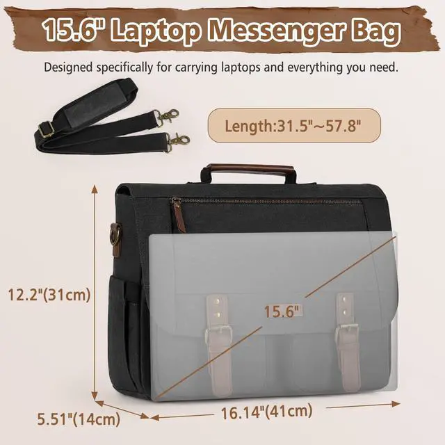 ^^ COMFORTABLE TO CARRY: The handle of this laptop messenger bag is wrapped in soft PU leather, so it won't hurt your hand even if you hold it for a long time. The laptop messenger bag also comes with a detachable and adjustable shoulder strap with padded comfort to reduce shoulder strain. you can transform it into a shoulder bag or a crossbody satchel bag. The messenger bag also has a luggage strap that can connect the bag to the suitcase for convenient movement during travel. ^^ CONVENIENT CANVAS MESSENGER BAG FOR MEN: The laptop messenger bag is fixed with magnetic buckle, which is very convenient. There is no need to go through the cumbersome process of unfastening the pin buckle to get the items inside. But you don't need to worry about accidentally opening the bag, because the high quality buckles of this laptop briefcase for men are magnetic enough. ^^