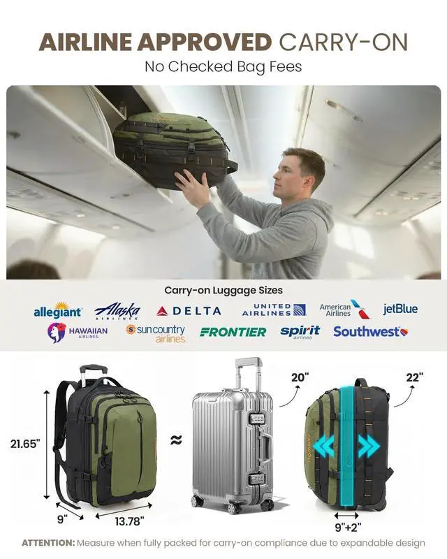 ATTENTION: Due to fabric elasticity, please verify dimensions when fully packed to ensure compliance with specific airline carry-on limits ^^