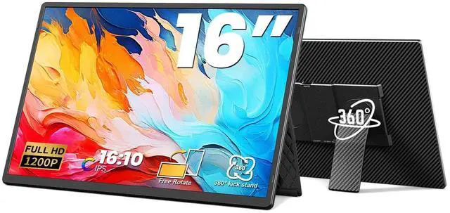 [Immersive 16" 1200P Full HD Display] Enjoy a truly expansive view with this 16-inch 19201200 IPS portable monitor for laptop. Featuring 300 nits brightness, 100% sRGB color accuracy, and a 178 wide viewing angle, it delivers vibrant, true-to-life visuals from any angle. The laptop screen extender anti-glare matte screen with low blue light technology ensures comfortable, flicker-free viewing for long hours of work or play. ^^ [Ultra-Slim & Travel-Friendly Design] This portable monitor is just 0.3 inches thin and weighs only about 1.5 lbs, as light as a water bottle, making it easy to slip into any bag.