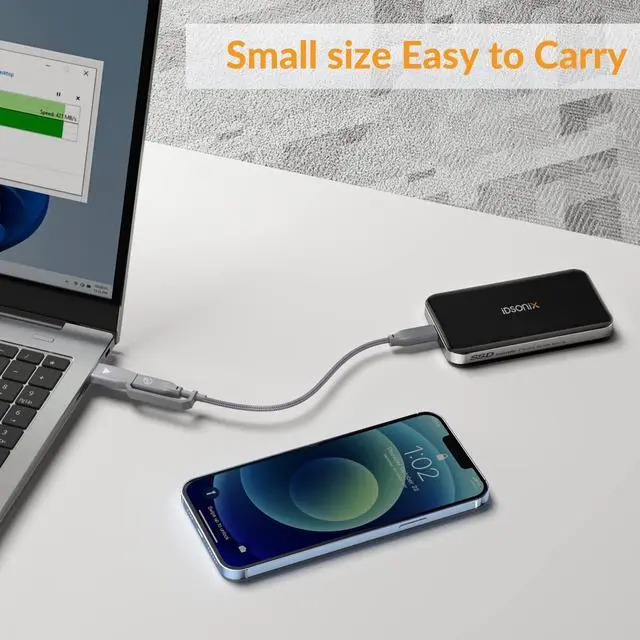 Greatly improve your transmission efficiency. ^^ [Small&easy to carry] Portable Hard Drive SSD are small and easy to carry. Equipped with 0.3M data line(A&C 2 in 1). It is suitable for use under the host end with different interfaces, and can be used anytime and anywhere for business trip, travel and work. ^^ [widely compatible] The portable SSD compatible with a variety of devices, can be connected with PCS, laptops, smart phones, game consoles, routers, etc. It is compatible with multiple operating systems, including Windows, Mac OS, Linux, Android, and iPad.