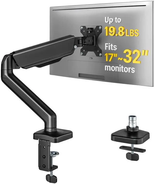 Space: Features a sleek, streamlined silhouette that elevates your workspaces modern visual appeal and is paired with built-in cable management to eliminate clutter, this vesa monitor mount maximizes desk space while blending minimalist design with practical organization for a tidy, efficient and stylish work area. ^^ Designed for Effortless InstallationThe intuitive quick-release VESA plate, paired with versatile C-Clamp and Grommet mounting options, makes this monitor desk mount effortless to install. From unboxing to securely mounted monitor, you can complete the streamlined setup of your monitor arms in just minutes. ^^ Support You Can TrustFrom product selection to daily use, our customer service team is dedicated to ensuring your experience with our single monitor arm is seamless and satisfying. Whether you need help with installation, compatibility, or performance, we provide responsive and reliable supportbecause your productivity deserves more than just a great product, it deserves peace of mind.