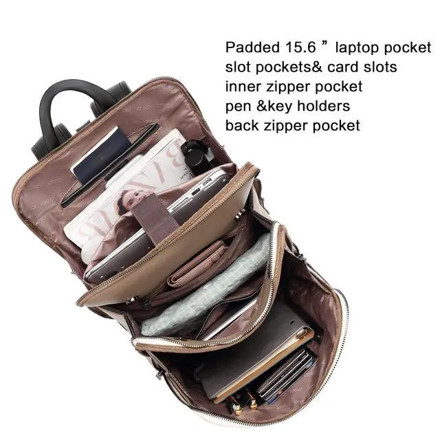 ^^ Unique Design: The laptop backpack women comes with high quality genuine leather, gun-tone hardware, buckles decoration for fashion and vintage appearance. Accordion-designed structure to ensure a large capacity. Crafted from the finest materials, luxurious detailing and immaculate finish, it is never out of style.