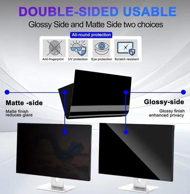 Option 2: Clips (for screens with a raised bezel only) Use the slide brackets that easily stick to the display frame, allowing you to slide the filter in and out of the screen as needed. Anyone can easily install and remove it. When you want to share the screen with colleagues, it provides a quick and easy way to remove and reattach the monitor privacy filter. Reusable. ^^ PACKAGE CONTAINS Each package includes 24 inch computer monitor privacy filter x2, Installation Guide x1, adhesive tape x4, slide mounting tabs x4, cleaning cloth x2. Our computer screen privacy filters are perfect for providing optimum privacy for your computer screen when travelling or working in an open workspace. If you have any questions, please feel free to contact us.