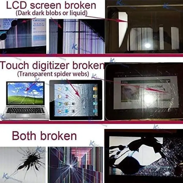 Question 2: WHAT SCREEN PART I NEED CORRECTLY? When only the touch screen (Digitizer) is broken, you should still see what is happening on the screen, and the screen display should still function as normal. When only the LCD is broken, you can still use the touchscreen, but the panel will have dark blobs or spiderweb-looking cracks (or both). When both LCD and touch screen are damaged, you may still be able to use portions of the touchscreen, and some parts of the LCD may display the image, but you will incur obvious difficulties in using the device as normal. If you are uncertain whether our item is suitable for your laptop, please contact us. Tell us your screen model number and send us some screen photos with screen number, we will help you find a 100% suitable screen replacement.