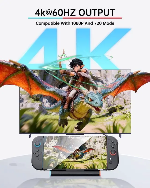 All-in-One Complete Bundle for Nintendo Switch 2This ultimate bundle for your Nintendo Switch 2 console includes a versatile dock for Nintendo Switch 2, a 60W fast charger, charging cable, and HDMI 2.0 cable. The hub itself is a multifunctional docking station for Nintendo Switch 2, featuring a 4K HDMI port, USB-C with 60W PD, and three USB 3.0 ports for all your controllers and accessories. ^^ Stunning 4K@60Hz HD Output for Switch 2Transform your gaming with crystal-clear 4K@60Hz output through this HDMI adapter for Nintendo Switch 2. It fully supports 1080p and 720p resolutions.