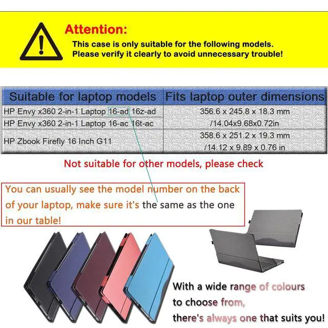 Suitable models: only for 16 inch HP Envy x360 2-in-1 Laptop 16-ad /16z-ad /16-ac /16t-ac & for HP Zbook Firefly 16 Inch G11. Does not fit any other model. Please check clearly.