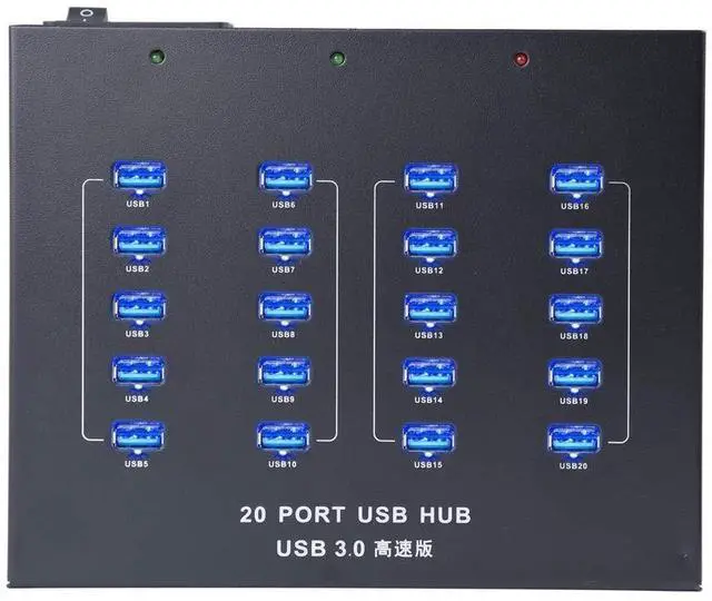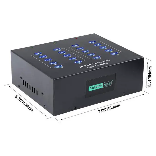 What You Get: Sipolar USB 3.0 20-Port Data Hub and Smart Charging Ports, 2 USB 3.0 A - B Cables, mounting ears, power cord, 12-month promise permit