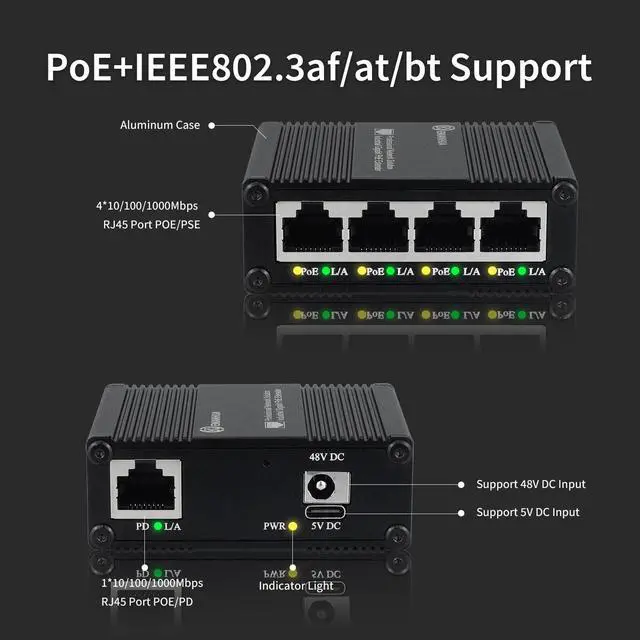 Versatile SolutionIEEE802.3 af/at Compatibility - This PoE extender is compatible with IEEE802.af/at PoE devices, making it a versatile solution for Poe security cameras, PoE switches, wireless access points, Gaming and more. Supports IEEE802.3 af/at/bt PoE power receiving.