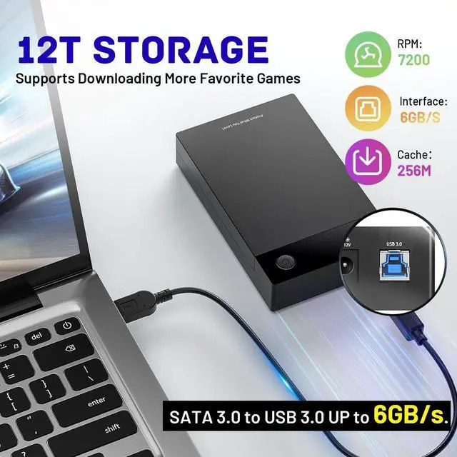 Rich Collection of Classic Retro GamesKinhank 12TB Retro Game Hard Drive comes with over 96, 000 classic games, 420 game collections, and 6, 000 3D games. It smoothly supports various emulators, including large-scale simulators. ^^ Powerful PerformanceEquipped with a 3.5 -inch 12tb retro gaming hard drive that runs at 7200 RPM, with 256MB cache and 6GB/s speed, ensuring stable and faster data transfer for a seamless gaming experience. ^^ Extensive CompatibilityThe 12tb hard drive is compatible with Windows 7 and above systems. To ensure smooth game performance, it is recommended to use an Intel Core i5 CPU or above and an Nvidia GeForce 1050ti or above graphics card for playing large-scale games more smoothly.