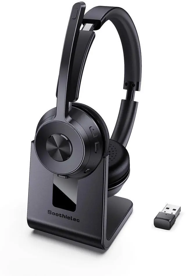 Wireless Headset, Bluetooth Headset with Noise Cancelling Microphone, Best Headset with Mic Mute for PC/Computer/Laptop/Cell Phones/Remote Work/Call Center