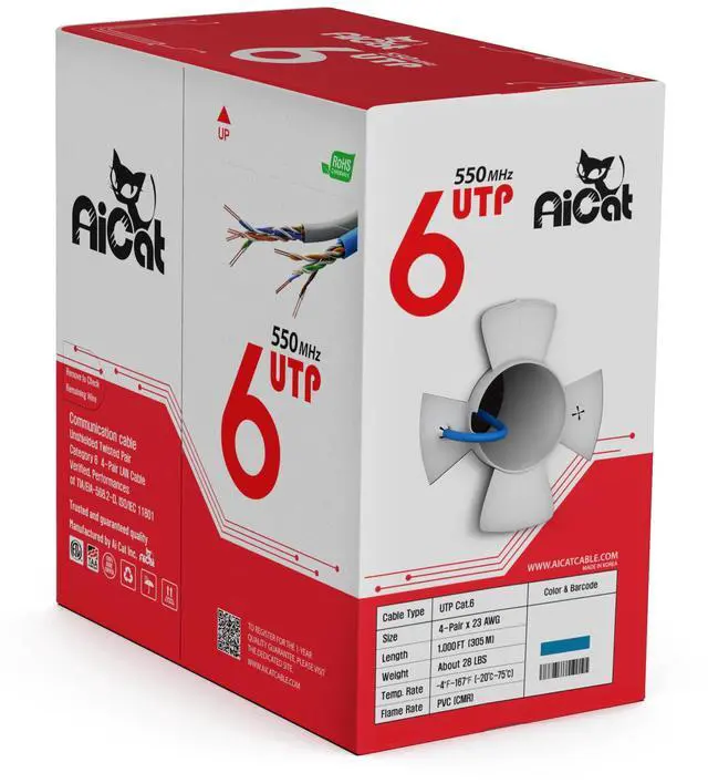 ^^ PERFORMANCE: While many cat6 1000ft network cables still max out at 250MHZ, Ai Cat. performs up to speeds of 550MHZ. Its a 10 gigabit ethernet cable. The box performs well too! Rigid with splash proof coating, your cat 6 cables are safe, tidy and damage free.