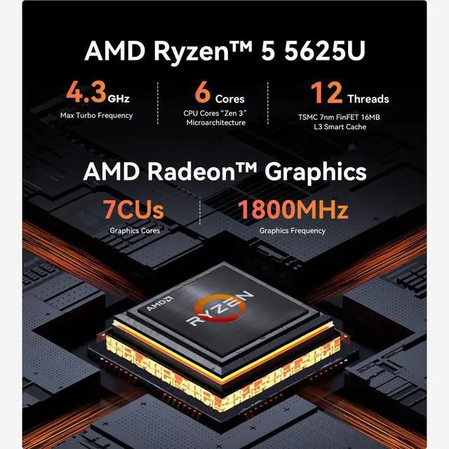 Powerful PerformanceThe Beelink EQR5 Mini PC is equipped with AMD Ryzen 5 5625U(6C/12T, max turbo to 4.3GH z, 16MB Smart Cache), which creates a very smooth experience for your visually home entertainment, Web browsing, streaming video, design, office work and games(such as Fall Guys, LOL, Call of Duty). ^^ 16GB DDR4 & 500GB SSDThe mini computer is powered with 16GB DDR4 RAM (can be upgraded up to 64GB MAX with 2 available memory slots). Installed with 500GB M. 2 PCIe 3.0 x4 2280 SSD and support dual-channel M.
