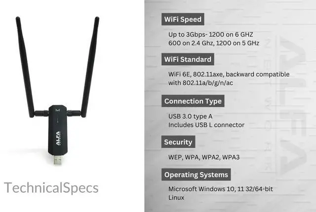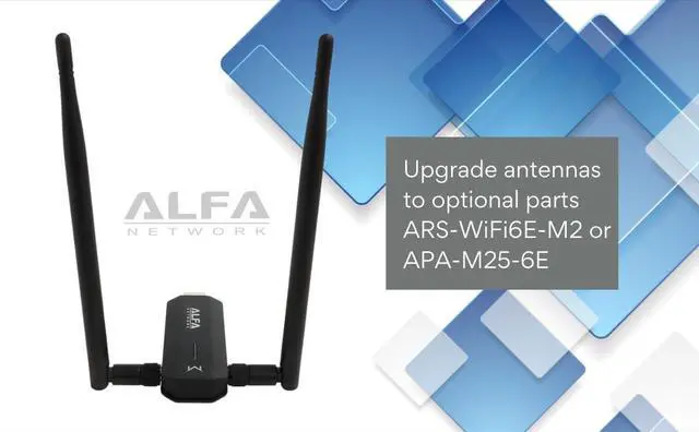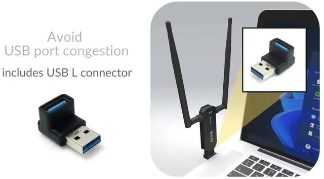 Installation: Get up and running in no time with our quick online driver download link printed in included quickstart guide. Requires Microsoft Windows 10, 11 (32/64-bit) or Linux (newer kernels). For connecting to 6GHz WiFi band Windows 11 is required. Windows 10 only supports 2.4 /5GHz. Eco-friendly packaging does not include CD disc as most modern computers do not have CD drive. Enclosed Quickstart guide contains driver download link. ^^ Includes 2x detachable 5 dbi gain antennas- powerful reception included or upgrade to compatible directional or higher gain antennas. No limits! ^^ Plugs directly into USB port or use with L connector to avoid blocking nearby USB ports ^^ Compatible with any router or mesh WiFi system; works best with WiFi 6E routers. Requires WiFi 6E router and Windows 11 or Linux to access 6GHz (works with Windows 10 for 2.4 & 5 Ghz only). This is what is known as a client or receiver, and connects to your computer or laptop. It is not a WiFi router and not compatible with cell phones or televisions.