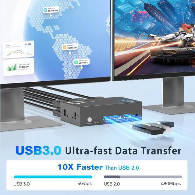 ^^ Adaptive EDID & Plug and PlayThis USB 3.0 KVM Switch features Adaptive EDID, ensuring stable and smooth image transmission by automatically optimizing display settings. Easy to install, this KVM switch requires no power supply or driver softwarejust plug it in and connect all the cables for seamless operation between two computers and one monitor. ^^ "What You'll Get We provide a lifetime warranty and 24-hour professional customer service and technical support for this KVM switch.