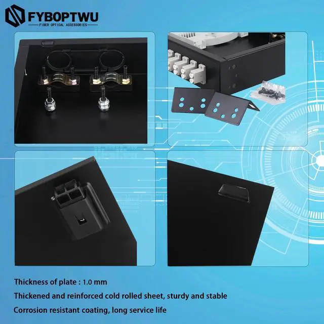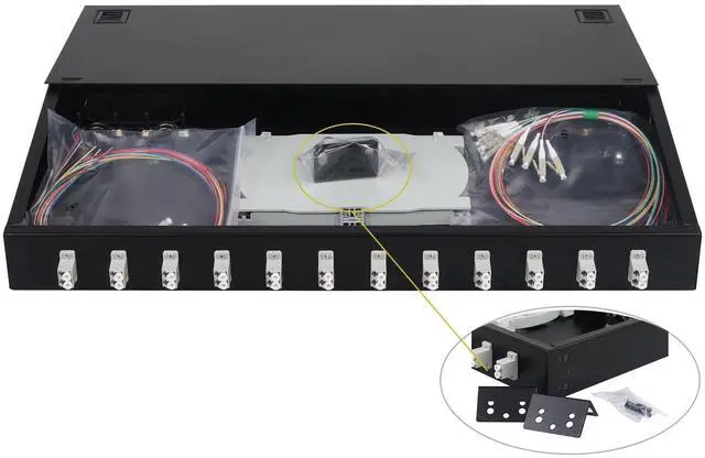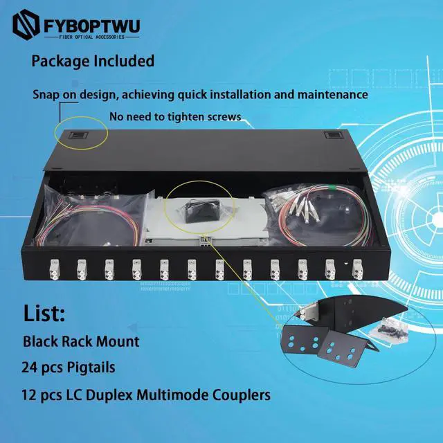 Large Space Fusion Disc Each tail fiber has its own winding channel, effectively protecting the fiber. ^^ Snap on DesignAchieving quick installation and maintenanceNo need to tighten screws. ^^ Thickness of Plate 1.0 mm; thickened and reinforced cold rolled sheet, sturdy and stableCorrosion resistant coating, long service life. ^^ Package IncludedBlack Mount, 24 pcs Pigtails, 12 pcs LC Duplex Multimode Couplers ^^ Brand Service12 months after-sales service gives you a good shopping experience. If you have any problem, please contact us, we will solve it for you and make you reap satisfaction.