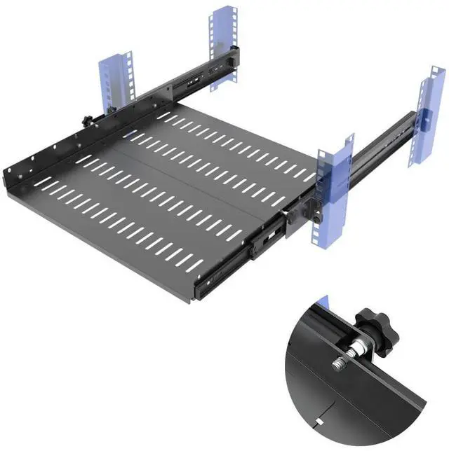 ^^ Sliding Lock: This 1U network sliding rack shelf is with the Sliding lock at 2 sides. It will secure the shelf to avoid damage to hard mounted items in use.